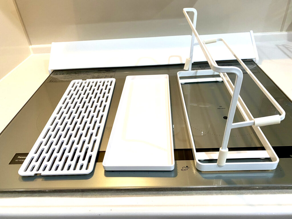 すこし高価だが、綺麗に収まり倒れることもなく、蓋も下におけるし、購入してよかった。ストレスがなくなりました。