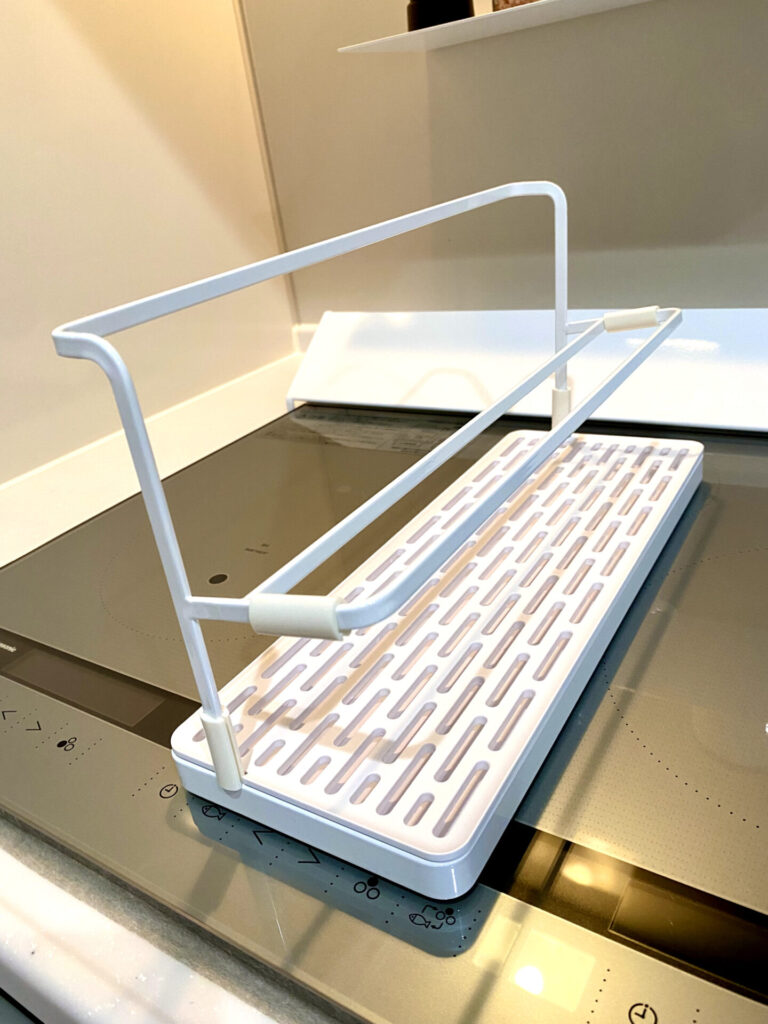 小さなパーツをどこに置くかいつも迷っていましたが、これがあれば解決。キッチン回りがすっきりしました。